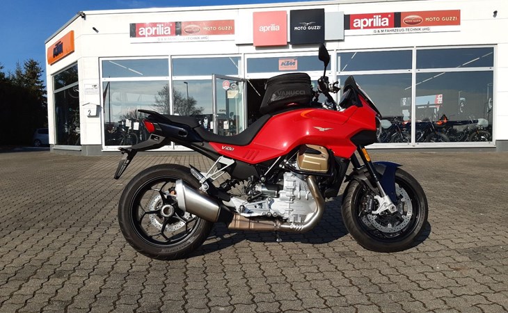 Sind Sie bereit für ein vollkommen neues Kapitel Motorradgeschichte? Die V100 Mandello ist die perfekte Symbiose zwischen den dynamischen Qualitäten eines Roadsters und dem Komfort eines vollwertigen Tourers. Sie lässt jede Kurve zu einem Hochgenuss werden und garantiert Fahrer und Beifahrer auch auf langen Touren ein Höchstmaß an Komfort. On top bietet die V100 eine Vielzahl neuester Technologien, wie das bisher einzigartige adaptive Aerodynamiksystem, die einen einzigartigen Schritt in die Zukunft ankündigen.