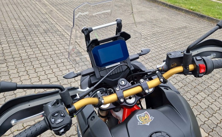 Der hochmoderne 2-Zylinder-Paralellel-Twin leistet 58,8 kW / 80 PS und 70 Nm Drehmoment . Bei einem Leergewicht von nur 204 kg fahrfertig bietet die Tuareg satte 210 kg Zuladung . 18 Liter Tankvolumen sorgen für eine Reichweite von circa 450 Kilometern . Voll einstellbare Federelemente garantieren besten Fahrkomfort und Sicherheit. Ride-by-Wire, vier Fahrmodi und die elektronischen Fahrassistenzsysteme des aPRC - Aprilia Performance Ride Control - gehören ebenfalls zur Serienausstattung.