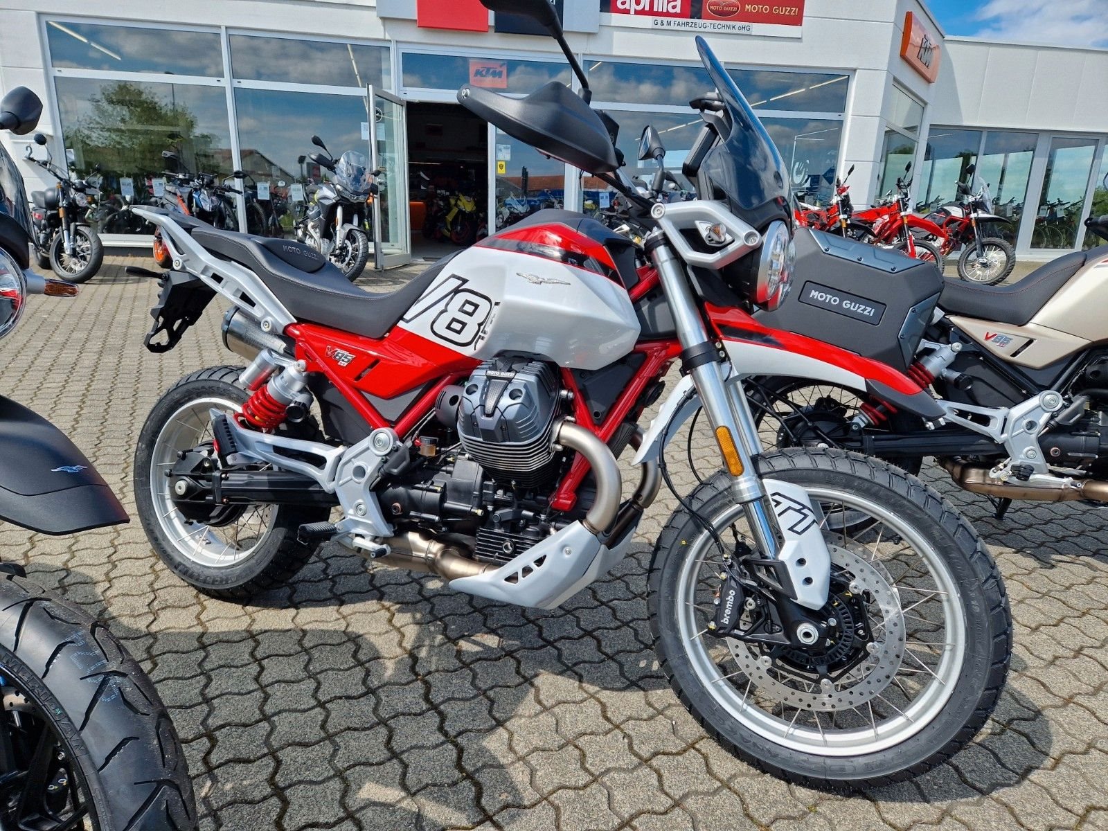die neuen Moto Guzzi V 85 TT E5+ verfügbar vom Moto Guzzi Vertragshändler, Neufahrzeug ohne Zulassung zum Barpreis.